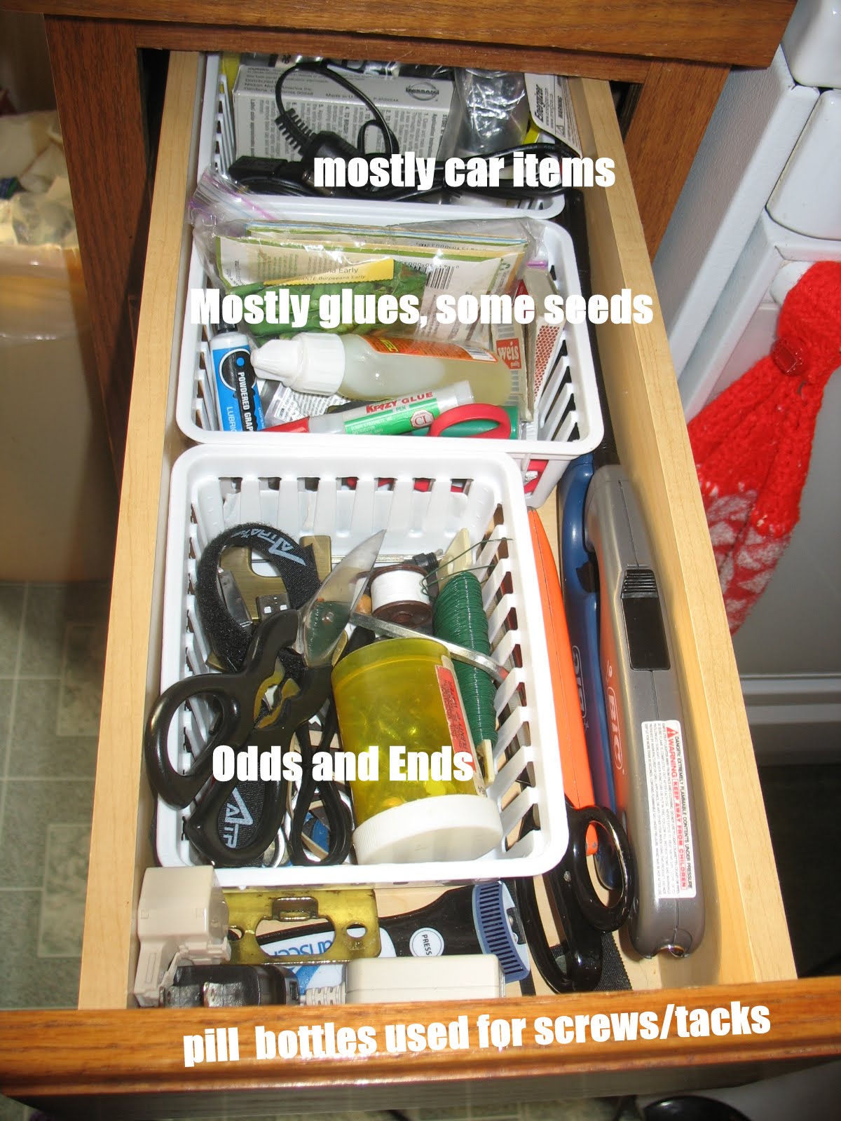 This is the ever-growing junk drawer. I try to keep it tidy every month or two, but